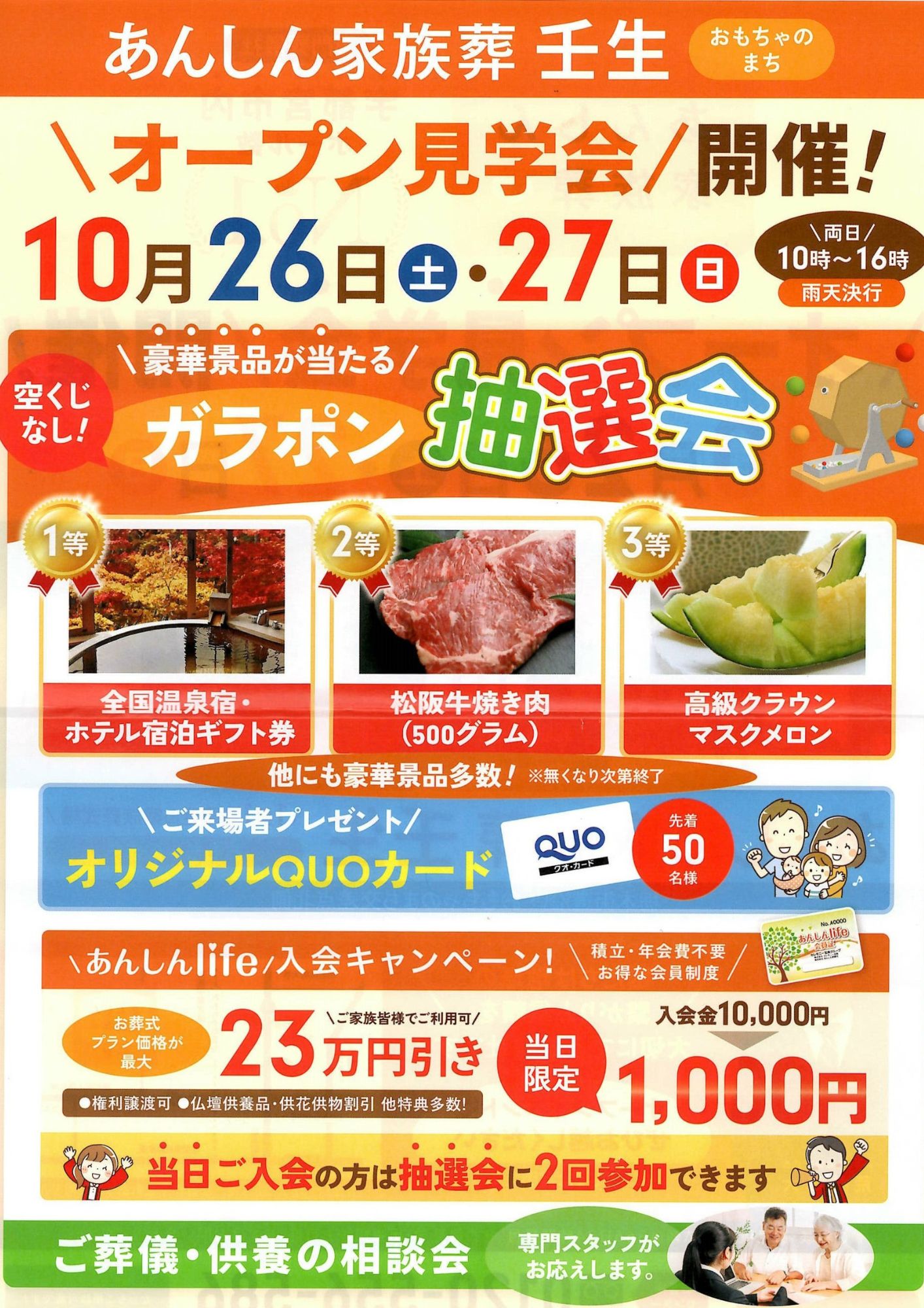2024.10.14 10月26日・27日 あんしん家族葬壬生にてオープンイベント開催!